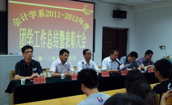 6月19日下午,我系2011-2012学年度团学工作总结暨表彰大会在学术报告204教室举行。我系党总支杨怀有书记,党总支康昱明副书记, 副主任李号龙参加了会议、团总支书记孙世强、党务秘书王增峰、行政秘书吴金东及我系团总支学生分会全体学生干部、团员代表共200余人共同参加了会议。会议由康昱明副书记主持。