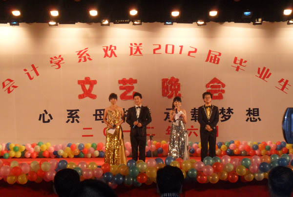 6月28日晚20:00,我系“心系母校,承载梦想”欢送2012届毕业生文艺晚会在学院体育馆成功举办。学院董事长、院长完颜弟,学院副院长、副书记李玉仓,副院长杨培权,党委副书记马义哈等学院领导观看了演出。教务处、党委工作部、学生处等部门负责同志及各系党总支书记、副书记、团总支书记、院系学生会负责学生、2012届毕业生等共2000余人观看了晚会。