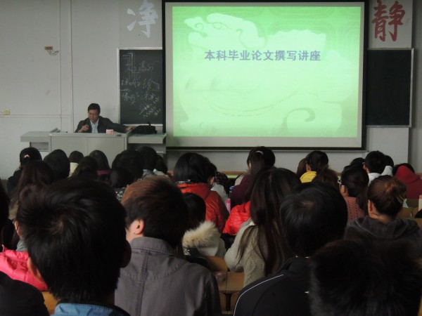 我系2013届毕业论文指导工作已于2012年10月20日全面展开。为加强我系毕业论文工作,提高毕业论文的质量和水平,保证人才培养质量,10月25日至10月30日,我系分别安排了教授委员会成员老师----李培根教授、孔龙教授、王学龙教授、董成教授和袁有赋教授为毕业生举行论文指导专题讲座。讲座就毕业论文如何选题、如何构思与写作以及毕业论文创作过程中应该注意的问题等多方面的内容进行详细的介绍和说明。学生反映收益颇多,并就相关问题与教授们进行讨论学习,讲座收到良好效果。