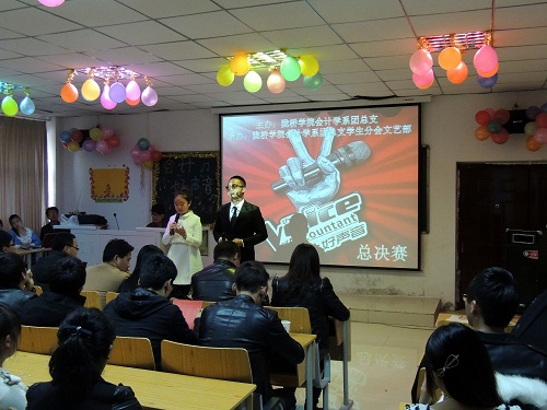 10月28日下午17:00,会计学系第二届会计好声音校园歌手大赛的总决赛在学术报告厅204教室隆重举行。会计学系党总支副书记刘海娟老师,会计学系团总支书记晋如意老师,会计学系2013级辅导员师鹏程、朱财老师担任本次大赛评委委员会主席。