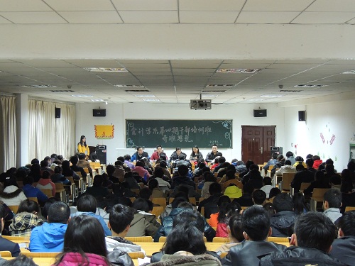 为了更好地开展会计学系学团工作,提高我系学生干部的综合素质。11月14日晚,我系在学术报告厅204教室举行会计学系第四期学生干部培训班开班典礼,学院副院长兼会计学系党总支书记杨培权,会计学系党总支副书记、行政副主任刘海娟,团总支书记晋如意,大一新生辅导员朱财、师鹏程及学生干部共计200余人参加了此次开班典礼。