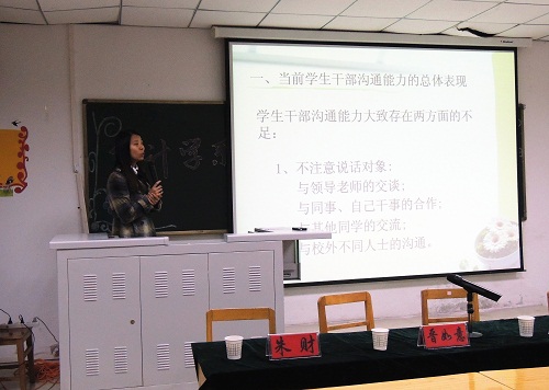 会后,会计学系党总支副书记刘海娟做了第一场关于“学生干部如何培养沟通能力及如何应对突发事件”的专题培训。