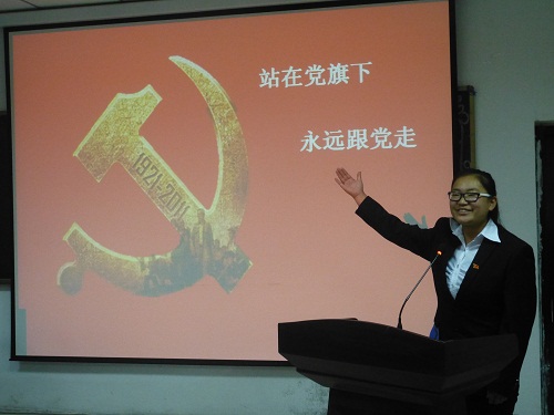 为了进一步提高我系入党积极分子的综合素养,提高学生对党的发展历程的认识水平。11月27日下午,我系党总支在学术报告厅二楼举办了以“站在党旗下,永远跟党走”为主题的演讲比赛。会计系党总支副书记、行政副主任刘海娟,团总支书记晋如意,党务秘书王增峰,行政秘书吴金东和辅导员侯立东、朱财老师担当评委并观看了此次比赛。