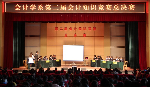 为了贯彻学院教育教学改革的精神,激发学生夯实专业基础的热潮,12月3日下午,会计学系第二届会计知识竞赛总决赛在我院学术报告大厅隆重举行。莅临现场的嘉宾有学院执行院长,学院副院长兼会计学系党总支书记杨培权,学院学生处处长、团委书记张计强,教务处教学督察组副组长杨怀有,学院各系教学主任以及我系全体教师。本次比赛的评委团由会计学系资深教学工作者张春燕、雷娟、陈明旻老师担任。