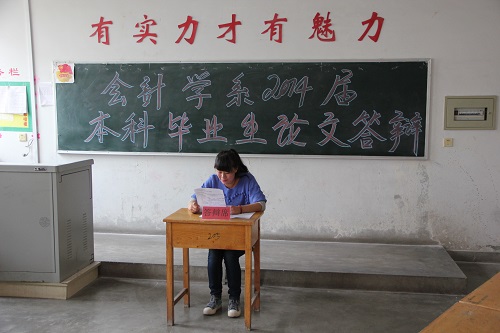 在答辩委员会的有序组织与领导下,在全体师生的通力配合下,会计学系2014届本科毕业生论文答辩自5月17日开始至5月18日圆满结束。本次答辩共分24组,共有1054名毕业生通过答辩,4名同学未能通过答辩。根据答辩规范要求并经答辩委员会研究决定:张晓虹、王丹、赵亚明、杨勃四位同学进入二次答辩。