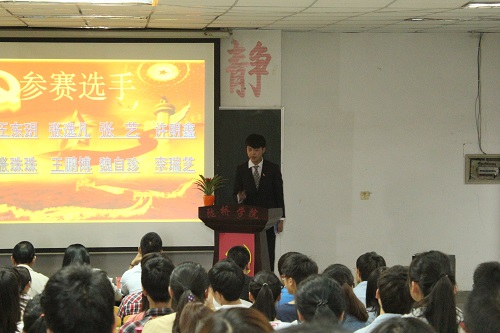 比赛在庄严的国歌声中拉开帷幕。入党积极分子通过这一个多月的党课学习,对党都有了更深刻的了解。他们用最饱满的热情,高昂的声音来表达对党的热爱。比赛中,王浩、宋彦伯等十名选手围绕“站在党旗下,青春永飞扬”的主题展开了精彩演讲,他们讲述了自己对党的认识,展现出了渴望入党的执着精神,精彩的演讲令场下不时响起热烈的掌声。