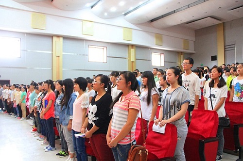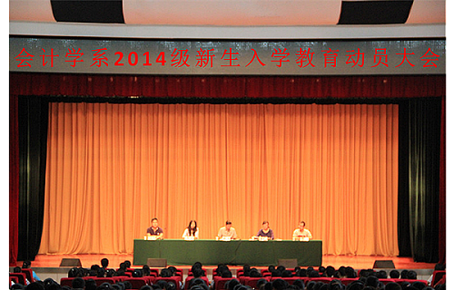 为了使新生尽快调整状态、适应大学新生活,从而更好地度过大学四年时光。9月9日下午,会计学系2014级新生入学教育动员大会在学术报告厅隆重召开。大会在嘹亮的国歌声中拉开帷幕。学院副院长兼会计学系党总支书记杨培权、系主任李菊香、系党总支副书记刘海娟、系主任助理邢志斌、系团总支书记晋如意,2014级新生辅导员及全体大一新生参加本次动员大会。