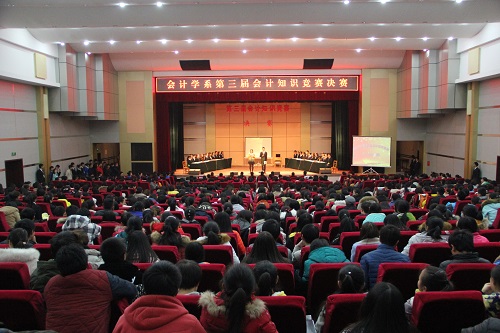 12月16日晚7:30,会计学系第三届会计知识竞赛总决赛在学术报告厅成功举办。学院助理、学生处郇东处长、科技处丁敏处长、教务处于永海副处长等学院领导和会计学系全体老师出席了本场决赛。为保证决赛的公平公正,我系还邀请了中恒会计事务所财务总监王立华女士和教研室主任雷娟老师、张红老师担任本次大赛的仲裁。