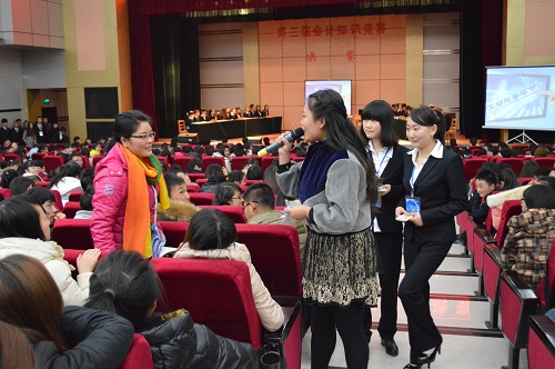 从初赛的427名同学中决出了24名佼佼者,通过分组抽签组成了决赛的六支参赛队伍。本次大赛的决赛共分为“狭路相逢”必答题、“争分夺秒”抢答题、“惊心动魄”风险题和“身临其境”实务操作题四个环节。比赛环节紧张而又激烈,观众热情高涨。实务操作环节是本次大赛的亮点,转账支票、进账单的填写和情景小品模拟,让现场选手和观众印象深刻。中恒会计事务所财务总监王立华女士的精彩点评让大家深刻认识到“实践出真知”的重要性。随后李菊香主任对本次大赛做出了全面的总结。经过激烈的角逐,第六组选手夺得第三届会计知识竞赛决赛的冠军,会计学系对获胜的团队和个人进行了表彰,此外中恒会计事务所还将为进入决赛的六名毕业生提供会计岗位培训的宝贵机会。