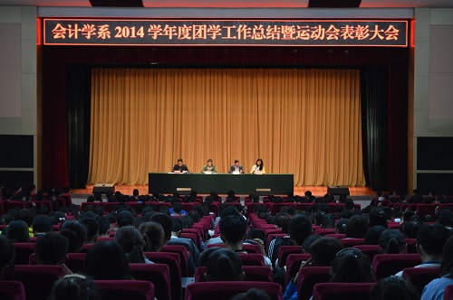 5月20日,会计学系2014年度团学工作总结暨运动会表彰大会在学术报告厅召开。学院副院长兼会计学系党总支书记杨培权,系党总支副书记刘海娟,系主任助理邢志彬,系团总支书记晋如意参加本次表彰大会。大会由晋如意老师主持。