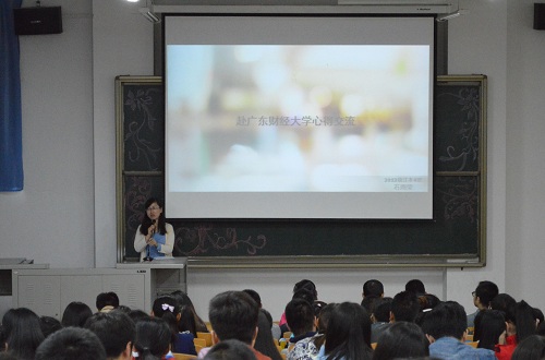 9月28日下午,会计学系在实验楼109教室举办了以“青春新视野”为主题的赴广东财经大学交流生分享会。会计学系全体教师、各年级学生代表二百二十余人参加了本次分享会。
