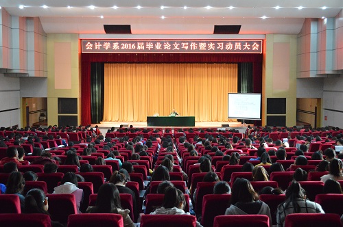 10月14日,我系在学术报告厅举行2016届毕业生论文写作暨实习动员大会。董成教授、会计学系主任李菊香副教授、会计学系党总支副书记张计强同志参加本次大会。会议由李菊香主任主持,2016届全体毕业生参加。