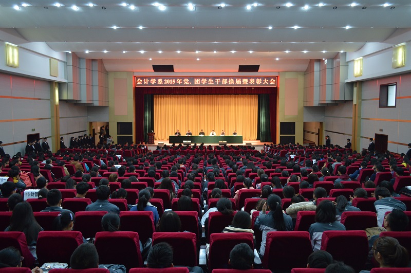 11月6日下午,会计学系2015年党、团学生干部换届暨表彰大会在学术报告厅隆重举行,学院党委副书记兼学生处处长郇东、学院副院长兼会计学系党总支书记杨培权、系主任李菊香副教授、党总支副书记张计强、教学副主任刑志彬、团总支书记晋如意、全系辅导员、学生党员代表及学生干部共计800余人参加本次大会。大会由晋如意老师主持。