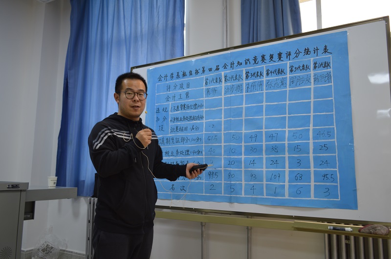 下午五点整比赛结束,评委团为体现“公平公正”原则,现场对六支代表队的业务处理结果进行了评判。赛后,霍鹏老师详细点评了各组的涉税业务处理,李菊香主任也就团队合作和财务处理方面进行了总结。最后,邢志彬老师宣读了比赛结果,各队的复赛成绩由记账凭证、涉税业务、财务报表三部分组成,第四代表队最终以109分夺得复赛第一名,第一、六代表队分列二、三名。此次复赛的成绩将带入总决赛。