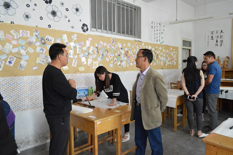 本次比赛分为软笔、硬笔、粉笔以及绘画四类,分别在6间教室同时进行。每位都表现出自己的最高水平,一幅幅富含韵味的作品,形成了一道靓丽的风景线。最后,到场老师点评选手的作品,蔡景之、赵玉河的软笔字、李瑞成的硬笔字、石莹娟的粉笔字得到了评委们的一致好评,同时,师生间亲切地交流彼此对于写字的心得。