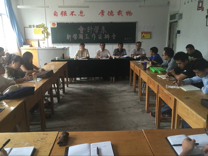 8月31日下午,会计学系在博学楼209教室召开新学期工作安排会议。学院副院长杨培权、管理学科教学总监王生林教授以及会计学系全体老师参加了会议。会议由系主任李菊香副教授主持。