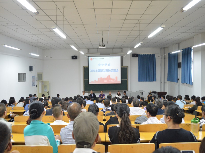 金秋九月,硕果累累。我系迎来了2016级516名新同学,为了让新生及家长全面深入地了解我院发展情况和会计学系专业设置、师资队伍、教学管理、就业去向等内容。9月3日下午,会计学系在实验楼110教室召开2016级新生家长见面会。学院副院长杨培权,学院副院长袁有赋副教授,管理学总监王生林教授,外聘专家万红波教授、杨肃昌教授以及全体教职工参加了见面会。会议由杨培权副院长主持。