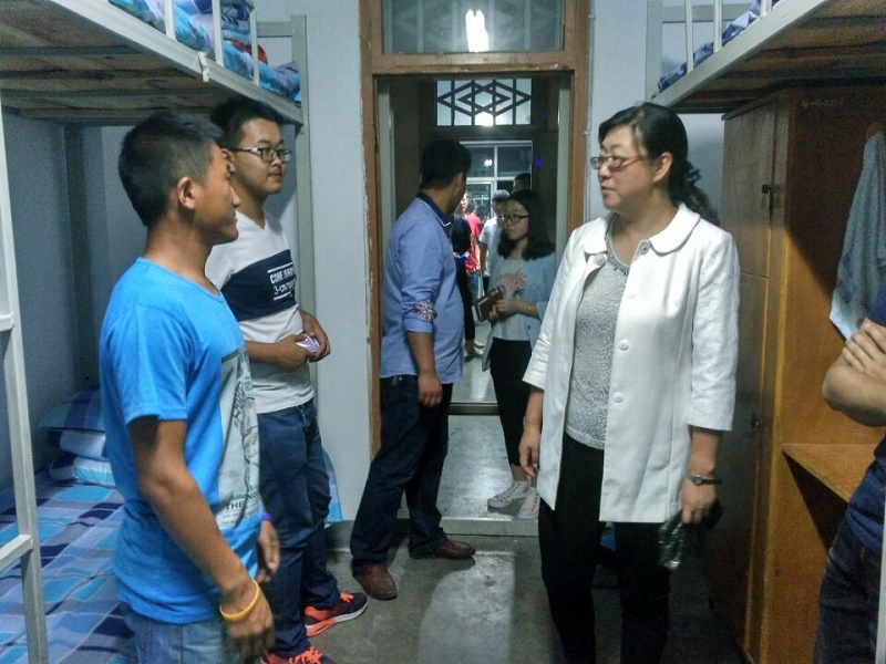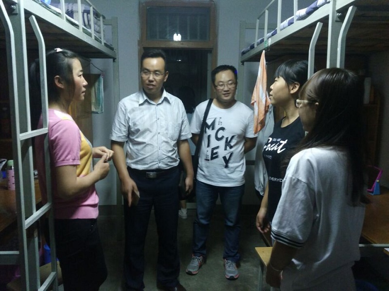 9月4日晚自习时间,由学院副院长兼党总支书记杨培权带队,系主任、副书记及新生辅导员深入公寓看望了新同学。