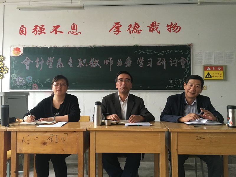 9月23号下午,会计学系在博学楼209教师召开专职教师业务学习研讨会。学院副院长杨培权、管理学科教学总监王生林教授以及会计学系全体专职老师参加了会议。会议由系主任李菊香副教授主持。