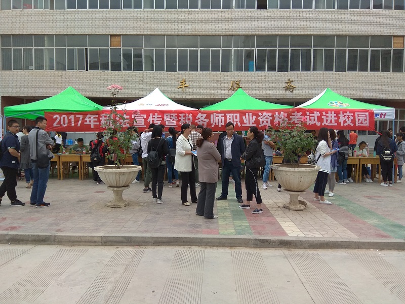 省注册税务师协会在我院食堂门口设点宣传,号召大学生毕业后投身于税务师行业,努力学习财税知识,积极面对就业创业积极创业,甘肃省注册税务师协会将积极为大学生提供就业实习的平台,活动期间还向大学生发放了税务师资格考试宣传资料。
