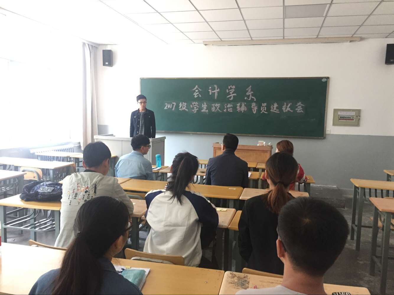 为了以榜样力量引导新生,帮助新生快速适应大学生活,协助辅导员老师更好地完成2017级新生的各项教育、管理工作,会计学系决定从2015级学生当中选拔一批优秀学生骨干兼任新生政治辅导员。8月31日上午,会计学系在1号教学楼109教室举办了2017级新生政治辅导员竞选大会。