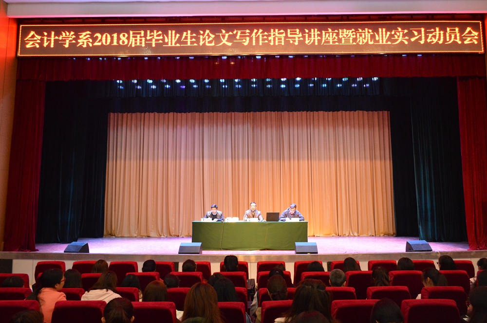 为规范和提高毕业生论文写作要求与质量,促进毕业生就业实习工作,我系于10月18日下午在学术报告厅举行了2018届毕业生论文写作指导讲座暨就业实习动员会。出席会议的有管理学科教学总监王生林教授、系领导班子成员,2018届毕业生和班级辅导员以及系全体专职教师。会议由马延柏老师主持。