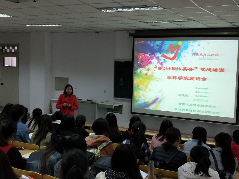 我系通过校企合作搭建“培训+实习+就业”平台,积极推进深化学院“全员促就业”、“以就业为导向”的指导思想,提高我系毕业生就业水平和质量。我系从第八周开始陆续推出了多个专业培训实习项目。10月17日下午睿晴会计师事务所在实验楼101教室举行了题为“从理论到实践的会计——大学生就业指导与面试通关”的专题讲座。睿晴会计师事务所资深会计师面向大三、大四部分同学介绍了财会人员就业现状与前景、会计日常工作与理论在实践的应用、大学生就业面试指导等内容,深受学生欢迎。10月19日在博学楼201教室北京正保教育集团(中华会计网校)就“大学生就业实训营”的项目进行了宣讲,从职业技能实训、职业素养实训、顶岗带薪实习、岗中跟踪服务、就业保障等五个方面向2018届毕业生做了讲解,为财会专业毕业生搭建了对口就业平台。10月25日下午在博学楼215教室大成税务师事务所(大连明基教育集团兰州站)的注册会计师、注册税务师梁建英老师向2018届毕业生就业实习培训项目做了宣讲介绍。