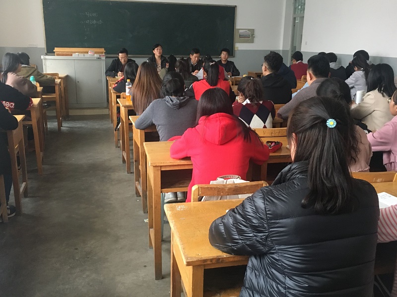 为响应和贯彻落实我院《关于2017-2018学年第一学期期中教学检查工作安排的通知》,以及加强和完善我系教学管理工作,我系于11月6日下午在博学楼210教室召开了系期中教学检查学生座谈会,学院副院长兼系党总支书记杨培权同志、系主任李菊香副教授、系主任助理马延柏老师、系教学秘书石小钢老师和各班学生代表60多人参加了本次座谈会。会议由系主任李菊香副教授主持。