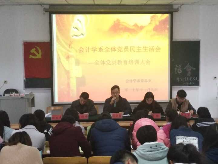 11月9日下午,会计学系在博学楼215教室召开党员教育大会。会上,系党总支副书记张计强同志着重从政治理论学习、专业知识学习、思想品德修养、行为习惯养成、转变工作作风等方面做了明确要求。他强调,学生党员是学生中的优秀分子和先进代表,是学生中间的一面旗帜,大家要将政治理论知识学习和专业知识学习相结合,密切关注当下政策,研读当下政策,努力跟上时代的步伐,努力做一名品学兼优的大学生;要将品德修养和行为习惯养成相结合,努力做一名品德高尚、行为规范的文明大学生。