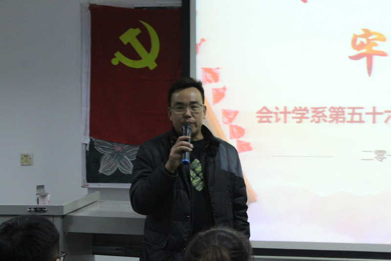 为深入学习贯彻党的十九大精神127下午会计学系在博学楼215教室举办主题为“不忘初心,牢记使命”第五十六期入党积极分子党课演讲比赛。