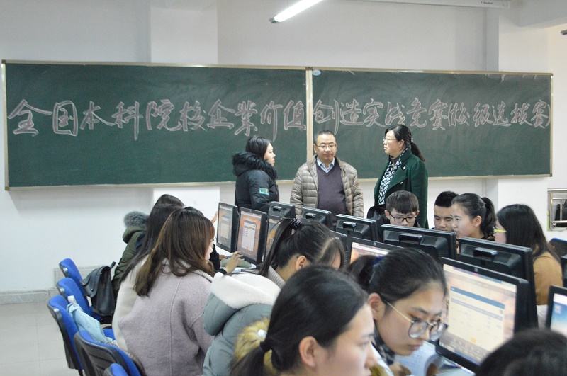 为进一步提升我院学生的专业技能,提高学生理论联系实践能力,培养学生创新创业精神。12月4日到9日中午,学院组织学生在实验楼301教室参加了为期六天的“第一届全国本科院校企业价值创造实战竞赛”(校级选拔赛)。学院副院长燕宏副教授、会计学系主任李菊香副教授亲临比赛现场观看学生实战竞赛。此次校级选拔赛由学院大学生创新实践中心主办、会计学系承办。