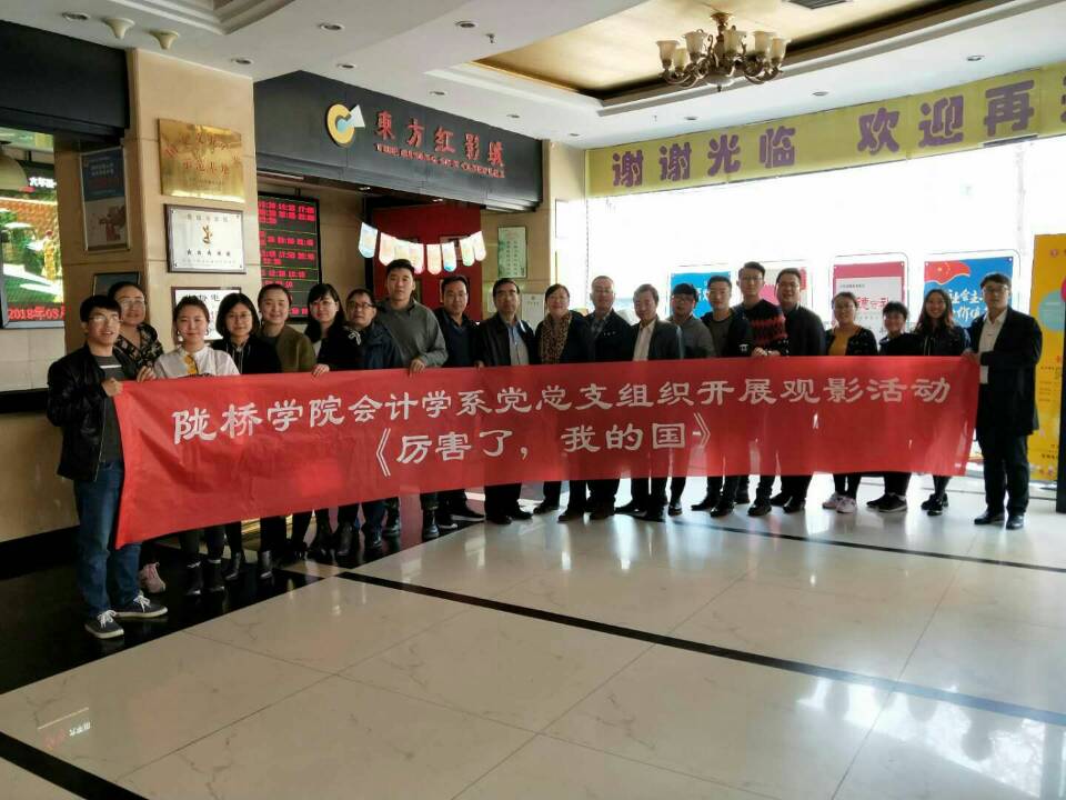 为引导广大教师进一步坚定理想信念,自觉培育爱党情怀和爱国精神,提高党性觉悟,强化“四个意识”,坚定“四个自信”。2018年3月13日下午,会计学系党总支组织教师观看了纪录片--《厉害了,我的国》。