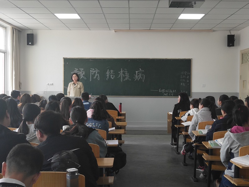 3月25-26日,辅导员利用晚自习、空堂时间通过课件、视频等等方式向学生们介绍了预防结核病的相关知识。内容包括:结核病的可疑症状有哪些、结核菌如何进行传播、如何预防结核菌的感染、出现结核可疑症状时应该如何做。并针对结核病的症状和传播途径,要求学生们做到以下几点:一是早上起床打开门窗通风,保持宿舍空气新鲜;二是养成良好卫生习惯,勤洗手、勤换衣、勤漱口等;三是咳嗽和打喷嚏时,要用纸巾捂住口鼻,避免传染;四是加强体育锻炼,增强抵抗力;五是健康生活,饮食和作息规律,保证充足的睡眠,增加机体的抵抗能力。