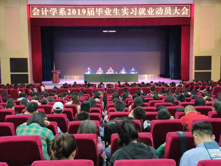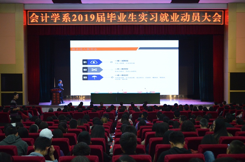 9月28日下午,会计学系在学术报告厅召开了2019届毕业生实习就业动员大会,会计学系领导班子全体成员及就业指导服务中心梁磊主任出席大会,2015、2016级辅导员和2019届全体毕业生参加会议。会议由陆海峰副书记主持。