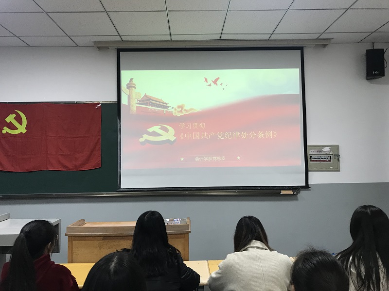 为进一步提高学习效率,加大宣传力度,推动修订后的《中国共产党纪律处分条例》全面贯彻落实,会计学系于2018年10月30日在博学楼2楼208召开学生党员民主生活会,专题学习新修订《条例》。