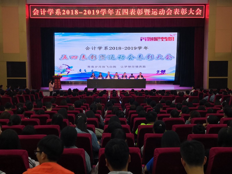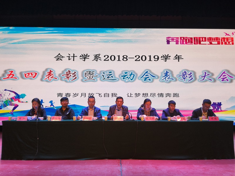 为强化基层团组织建设,丰富校园文化生活,拓展学生素质,引导学生积极参加社会实践活动及学风建设,在党总支正确领导和我院团委、学生会的大力支持下,我系于5月16日下午在学术报告厅召开了“五四表彰塈运动会表彰大会”。本次大会由学院副院长兼会计学系党总支书记杨培权,教学主任李菊香,教学主任助理李小龙,党务秘书海文涛,教学秘书石小纲,行政秘书田煜,团总支书记周欣出席,全体辅导员老师及2017级和2018级近800名同学参加。大会由周欣老师主持。