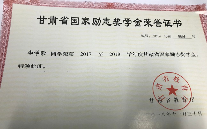 李学荣,21岁,浙江长兴人,2017年9月进入陇桥学院会计学系审计学1702班学习。李学荣同学在校期间学习认真踏实,上课专心听讲,课后苦心钻研,先后通过计算机二级等级考试、大学英语四级考试、普通话考试等,并荣获国家励志奖学金、三好学生等荣誉称号。在5月15日结束的“中华会计网校杯”第九届校园财会大赛中李学荣同学获得甘肃省第三名的好成绩,在全国400多所高校约20万名考生中实时排名1690名。更值得一提的是他以会计实务87分、经济法94分的优异成绩通过了2019年会计初级考试。