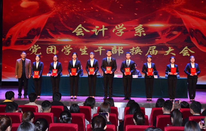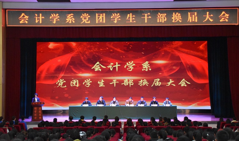 近日,在学术报告厅会计学系举行了2019届“党团学生干部换届大会”。会计学系领导班子及全体辅导员老师出席本次大会,2019届全体党团学生干部、全体2019级学生以及部分2018级学生参加。大会由陆海峰书记主持。