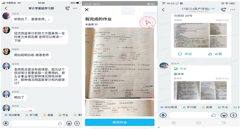 在此次新冠疫情期间,会计学系根据学院要求通过线上模式进行专业课程的网络教学,从网上教学平台收集统计数据、任课老师反馈以及线上互动交流来看,学生线上教学的整体参与度较高,能及时利用平台准时签到上课,与此同时积极配合教学,完成课前预习、课堂笔记、课后作业复习的学习全过程,整体教学效果良好。经过四周的磨合与适应,学生对老师的授课方式也逐渐适应,课堂能够积极配合教师展开研讨、提问、案例分析等互动环节,课堂参与度逐步提高。在线上学习的过程中,同学们对学习有了新的认识与感悟……