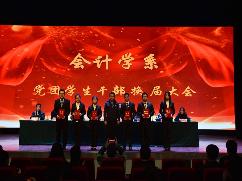 12月8日下午,会计学系2020届学生干部换届大会在学术报告厅召开。系党总支书记孙世强、党总支副书记牛应才、主任助理张希伟参加了本次大会,系党务秘书、行政秘书、各学生党支部书记及2020届全体学生干部、学生代表共400余人参加了本次大会。本次大会由团总支书记杨淑慧主持。