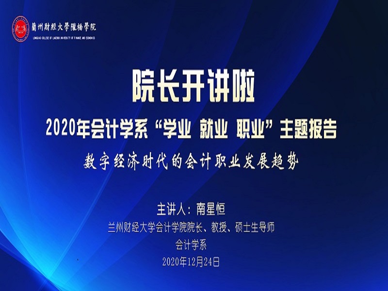 12月25日下午,兰州财经大学会计学院院长南星恒教授应邀来我系做题为《数字经济时代下的会计职业发展趋势》的学术讲座。系党总支书记孙世强、主任李菊香、全系所有教师及2019级学生参加了讲座。