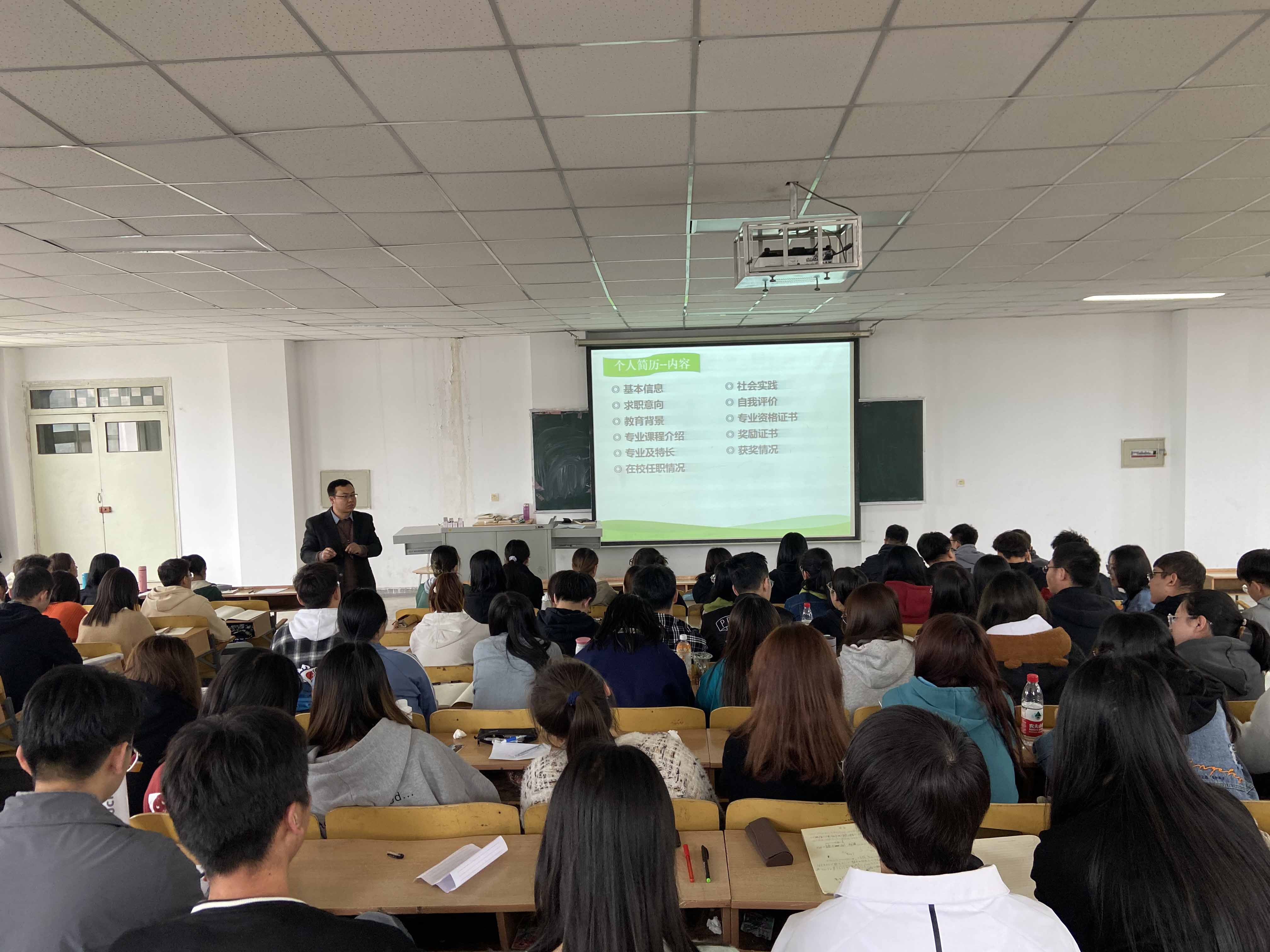 陈老师从自身工作经验出发,围绕我院学生就业现状,以鲜明的事例为同学们解答即将面临的就业方面的疑问,包括树立良好择业心态、知识和技能梳理、求职信息收集等,重点为同学们讲解如何制作个人简历,整个活动过程轻松愉快,同学们听讲认真,获益匪浅,为就业增加了信心。