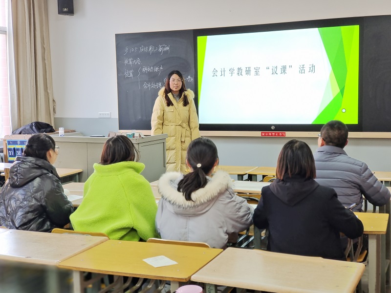 为了提高教师课堂教学质量和自身业务能力,2021年12月9日下午会计教研室在教研室主任石彩艳的组织下开展了本学期首次“议课”活动。活动由石彩艳主持,教师发展中心的宋众琴老师和全体会计教研室成员参加