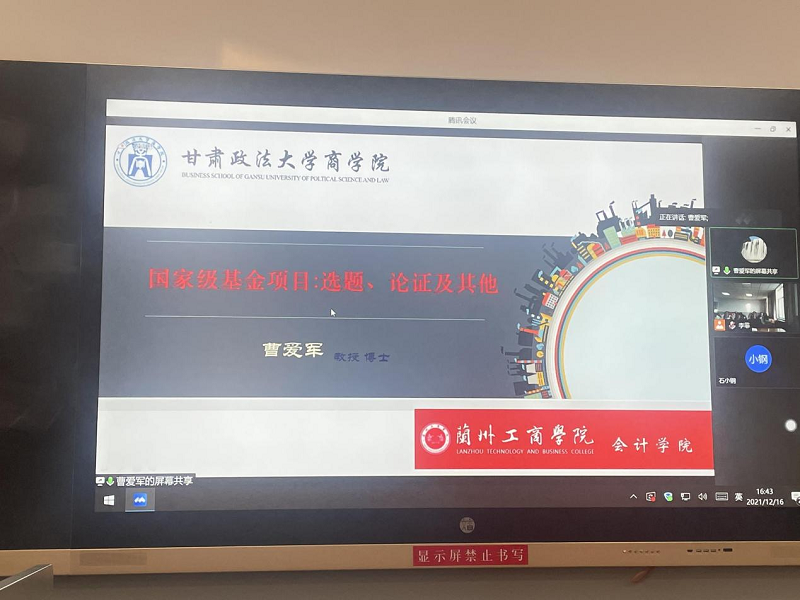 12月16日下午,会计学院邀请甘肃政法大学商学院副院长曹爱军教授面向全体专职教师开展“国家基金项目申报”专题讲座,讲座由会计学院院长李菊香副教授主持。