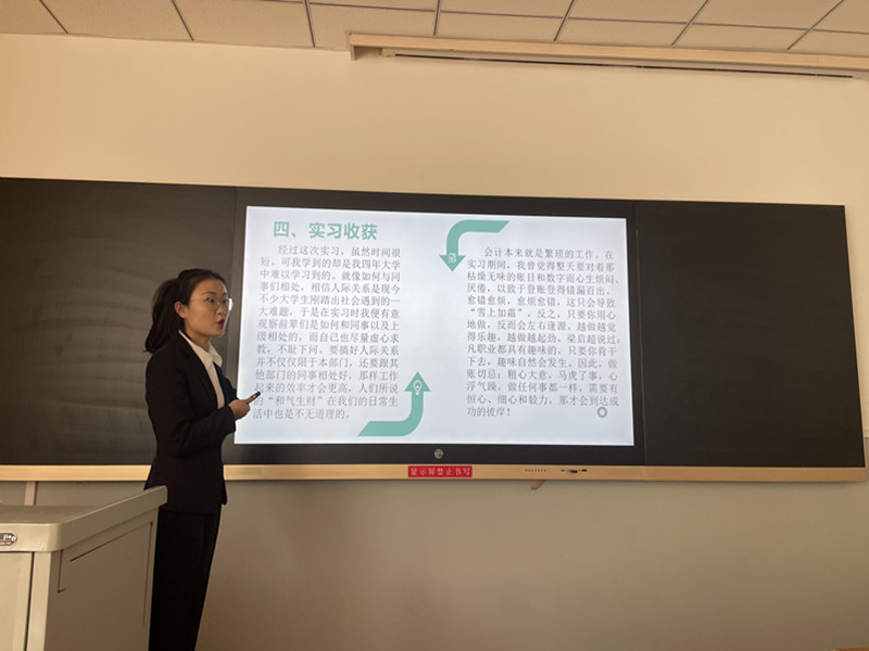 为全面总结2022届毕业生实习工作,进一步巩固毕业生实习成果,我院于4月28日下午分别在1号教学楼207、208、209教室组织开展了2022届毕业生实习答辩工作,本次实习答辩共分为三组进行,会计学院专职教师、2022届毕业班辅导员、2023届毕业班辅导员担任此次答辩的评委。