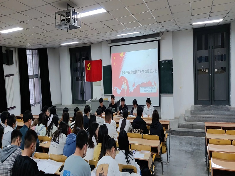 2022年6月10日下午,会计学院各学生党支部在博学楼101、102、103召开预备党员转正大会。参加会议的有各学生党支部书记、组织委员、宣传委员、纪检委员以及全体党员、预备党员,会议由各支部书记主持。