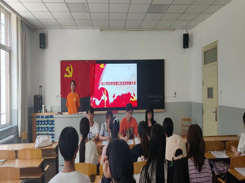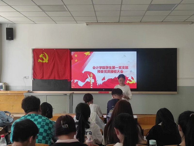 2022年6月15日下午,会计学院党总支各学生党支部分别在博学楼101、102、103召开接收预备党员大会,会议由各支部书记主持。