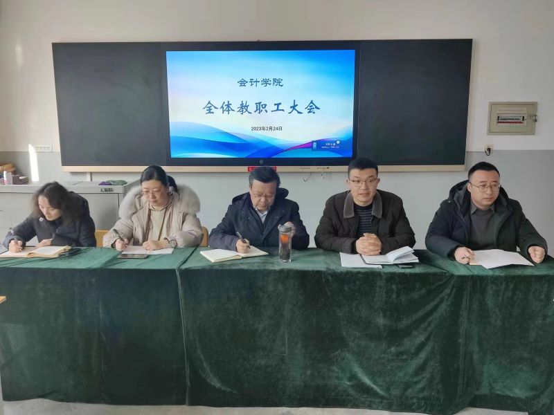 2月28日,会计学院在1号楼209教室召开新学期工作安排部署会,学院领导班子及全体教职工参加本次会议,会议由学院院长何成洋主持。