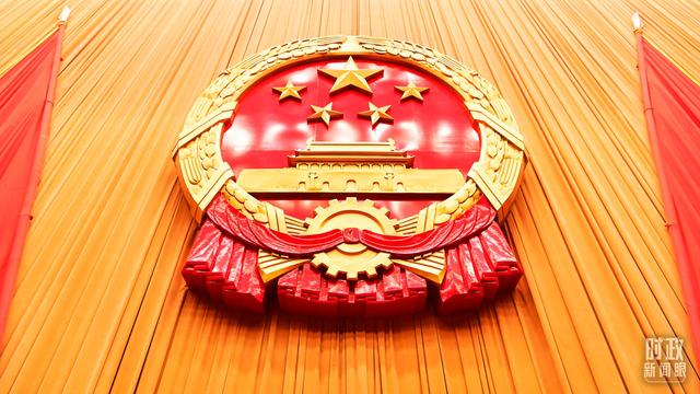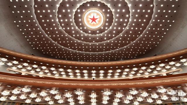 △人民大会堂内,国徽高悬。