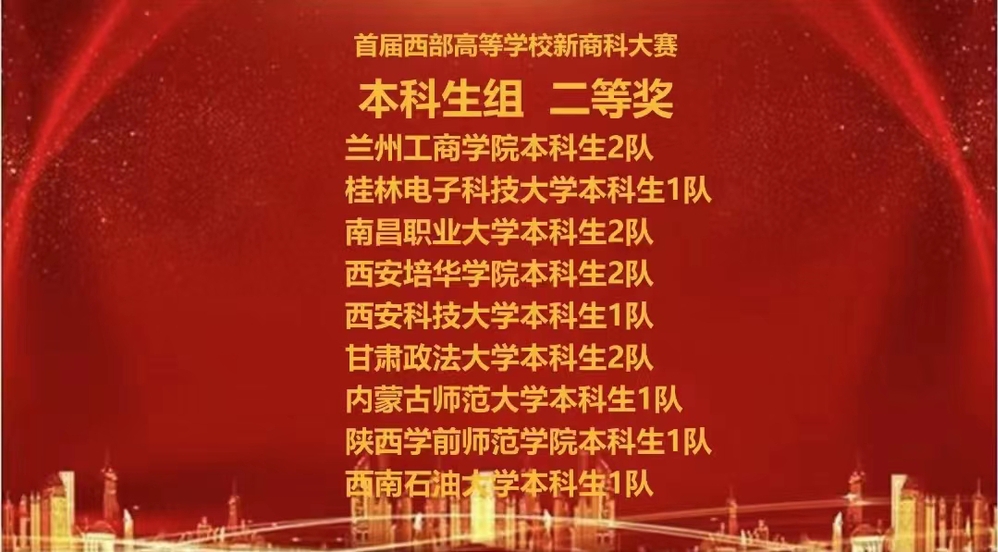 2023年4月8日,首届西部高等学校“新商科”大赛落下帷幕。本届大赛旨在落实响应国家加快数字化发展、建设数字中国的重大部署,落实新时代高等教育改革任务,加快新文科背景下的商科专业建设,推动全省商科教育内涵发展,提升人才培养数智化水平。